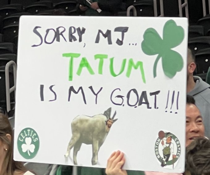 2025-02-24 15:13:26??綠軍主場球迷舉牌:對不起了喬丹 塔圖姆才是我心目中的GOAT