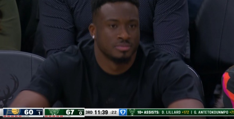 2025-03-16 13:30:39場上最猛的是我弟!字母哥的哥哥場邊觀戰雄鹿步行者