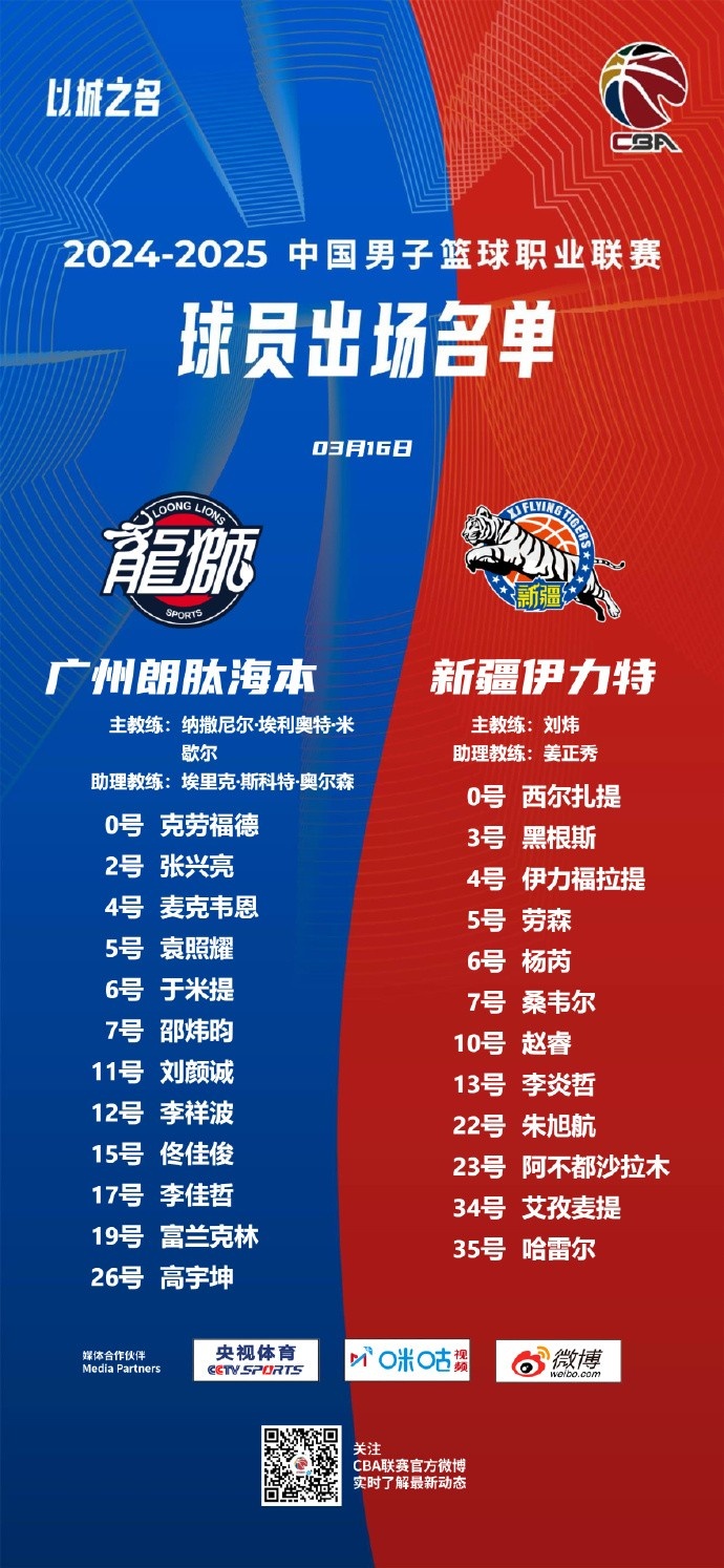 2025-03-16 21:51:36新疆隊VS廣州隊大名單:哈雷爾在列 齊麟缺陣 趙睿&阿不都領銜