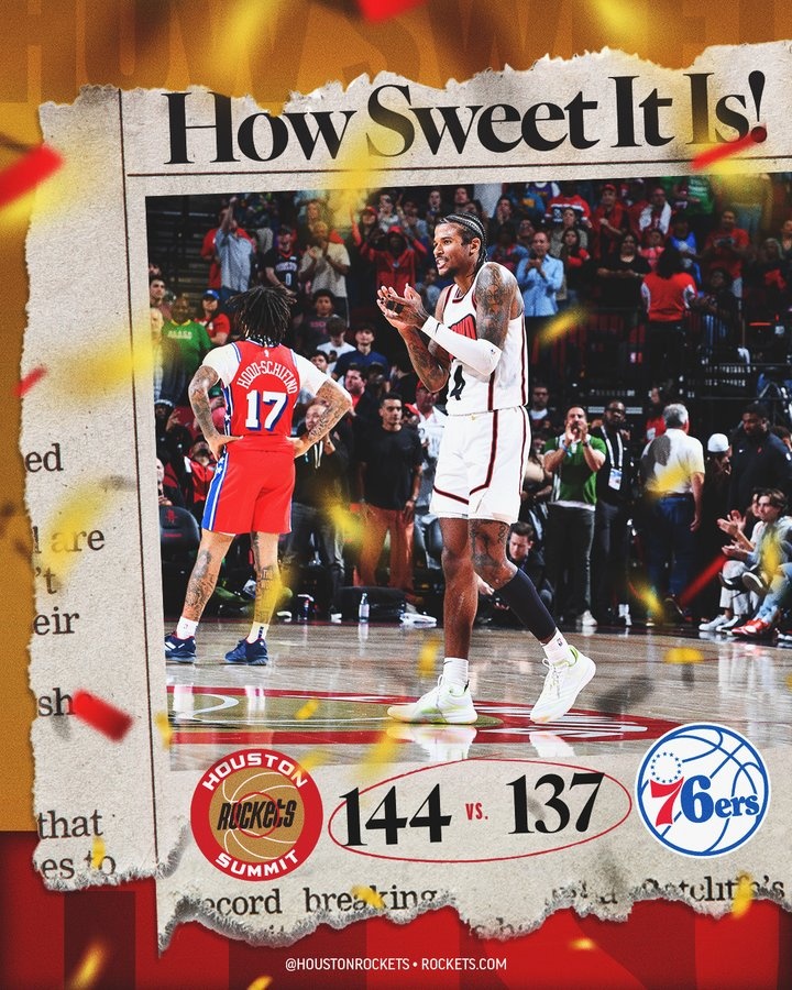 2025-03-18 14:27:00云淡風雪輕!火箭曬贏球海報 助攻生涯新高的杰倫-格林登上封面