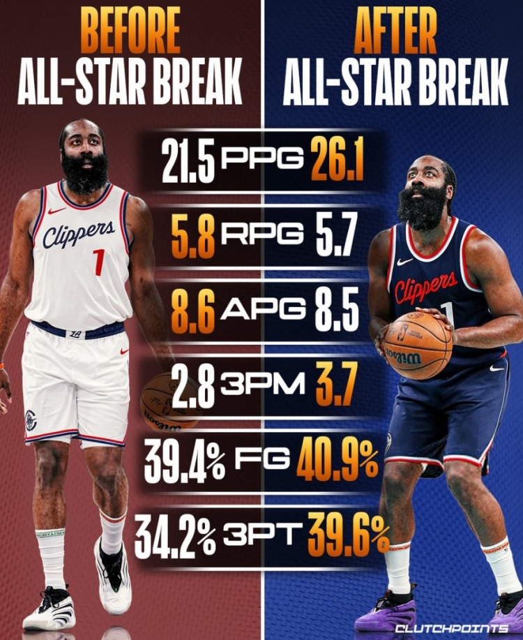 2025-03-19 07:01:53哈登全明星后場均26.1分5.7板8.5助 得分命中率皆有明顯上漲