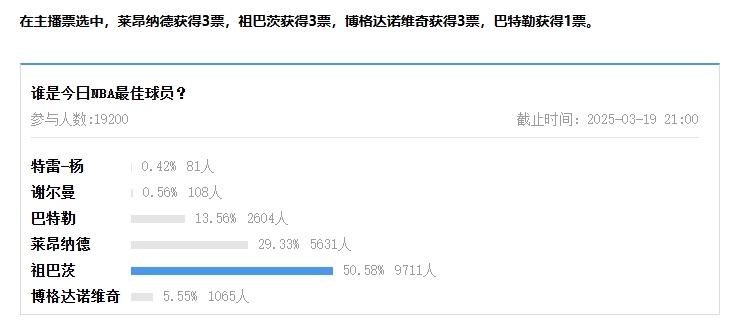 2025-03-19 21:23:44【直播吧評選】3月19日NBA最佳球員:祖巴茨
