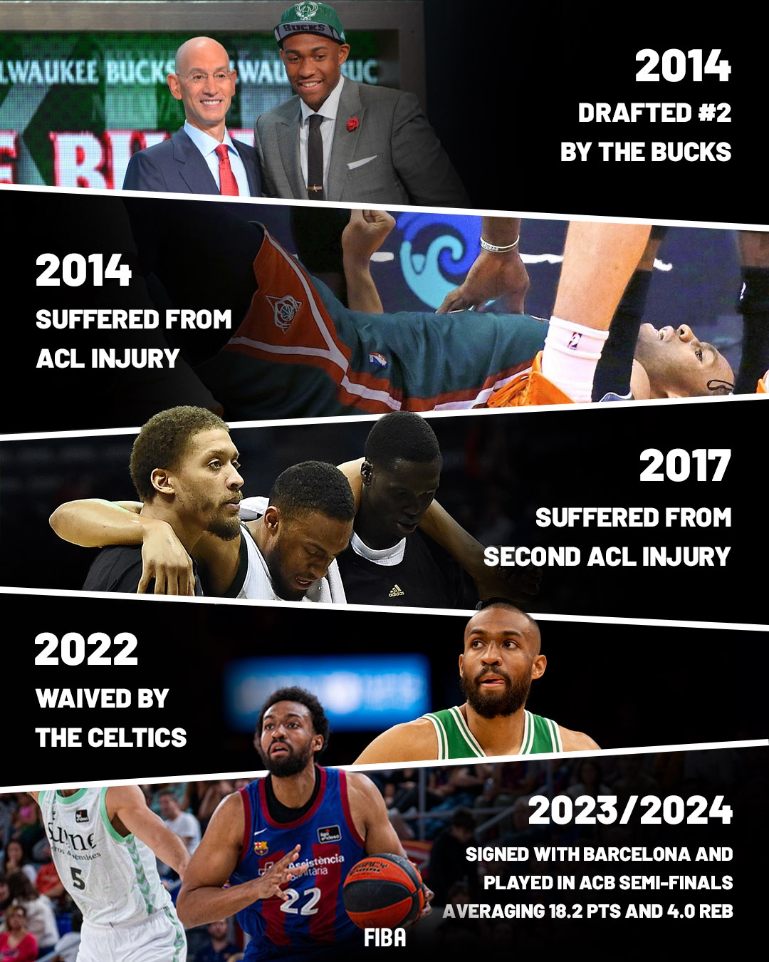 賈巴里-帕克2014年參加選秀被雄鹿以榜眼簽選中,2014年新秀賽季左膝前十字韌帶斷裂,賽季報(bào)銷。