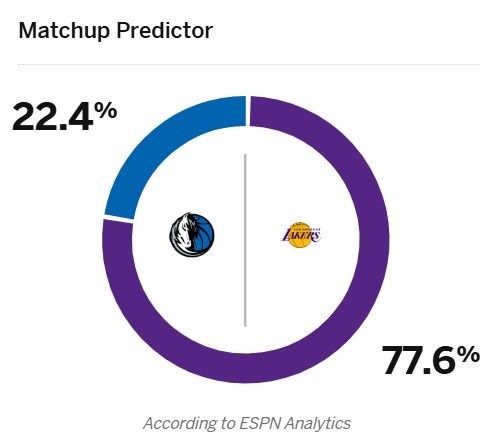 2025-02-25 15:09:32?東契奇濃眉交易后湖俠首次對戰(zhàn)!ESPN預(yù)測湖人勝率高達77.6%