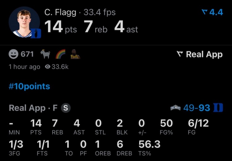 2025-03-22 05:32:35弗拉格瘋三首秀12中6輕取14分7板4助2帽 幫助杜克大勝圣瑪麗山!