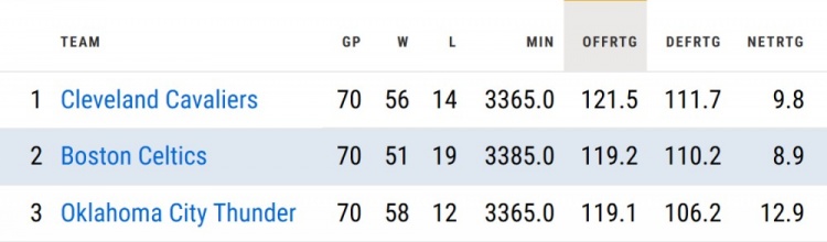 2025-03-22 20:56:39雷霆高居聯盟第一 防守效率&凈效率聯盟第一 進攻效率聯盟第三