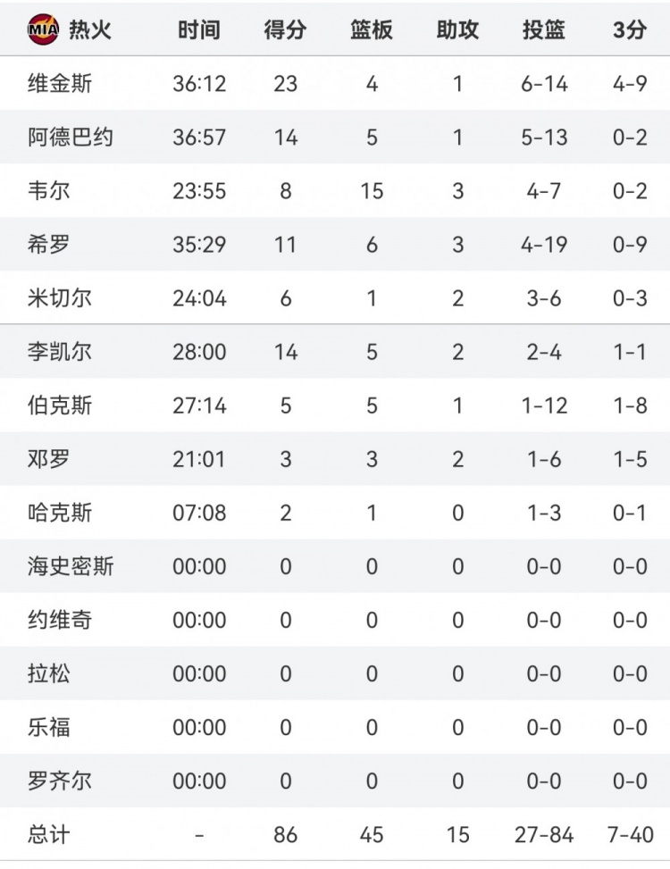 2025-02-25 15:13:20幾乎全員打鐵!熱火全隊三分40中7 但維金斯&李凱爾合計10中5