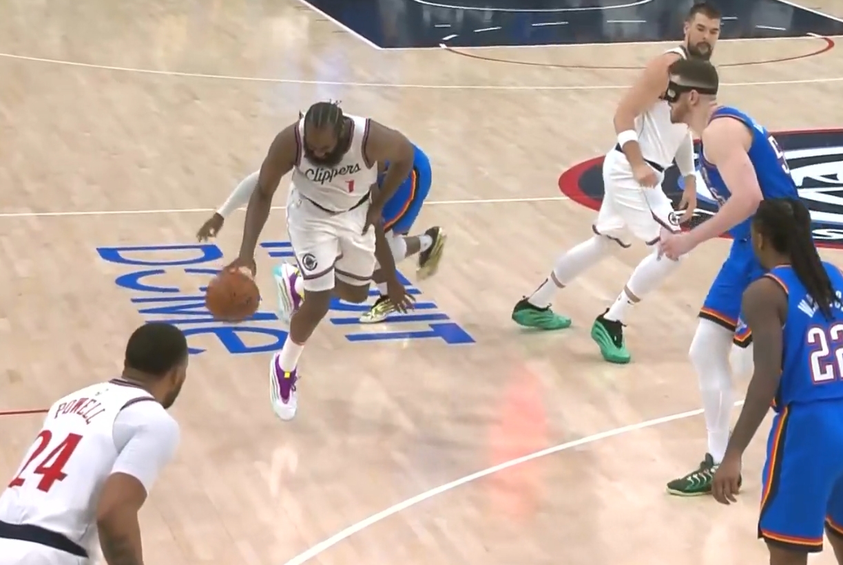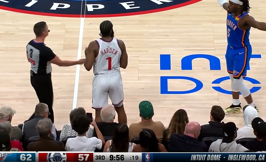 2025-03-24 21:14:01被多特貼身頂翻!哈登捂著自己的大腿痛苦倒地!好在無礙繼續比賽