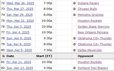 2025-03-25 23:35:38堪比季后賽!湖人最后11場:兩戰雷霆火箭 與勇士灰熊卡位 無弱旅