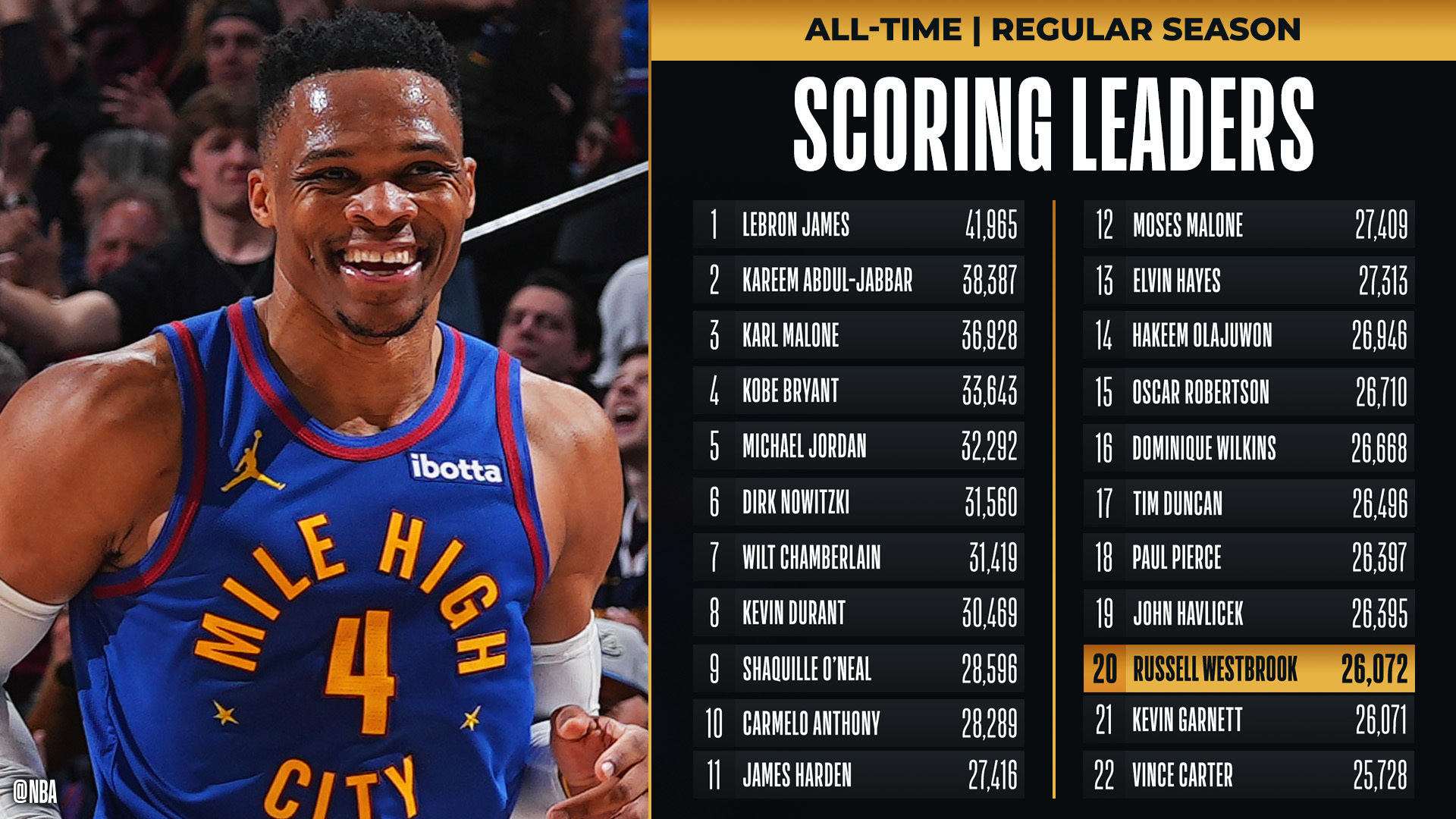 >>恭喜????威少生涯總得分超越加內特 升至NBA歷史第20位!NBA歷史得分榜最新情況"/>