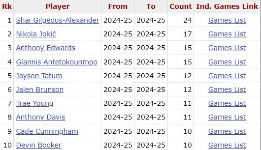 2025-03-28 12:15:16行走的得分機器!亞歷山大本賽季第25場35+ 其余人最多17次