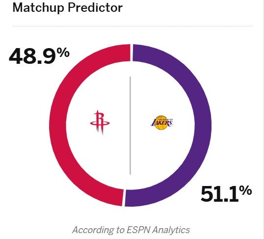 2025-03-31 20:16:54火湖大戰!ESPN預測明天勝率:湖人51.1%略占優勢 火箭48.9%
