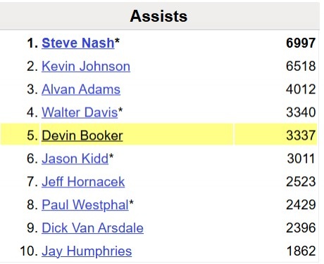 2025-02-26 15:18:15?布克太陽生涯助攻數達到3341 超越沃爾特-戴維斯升至隊史第4