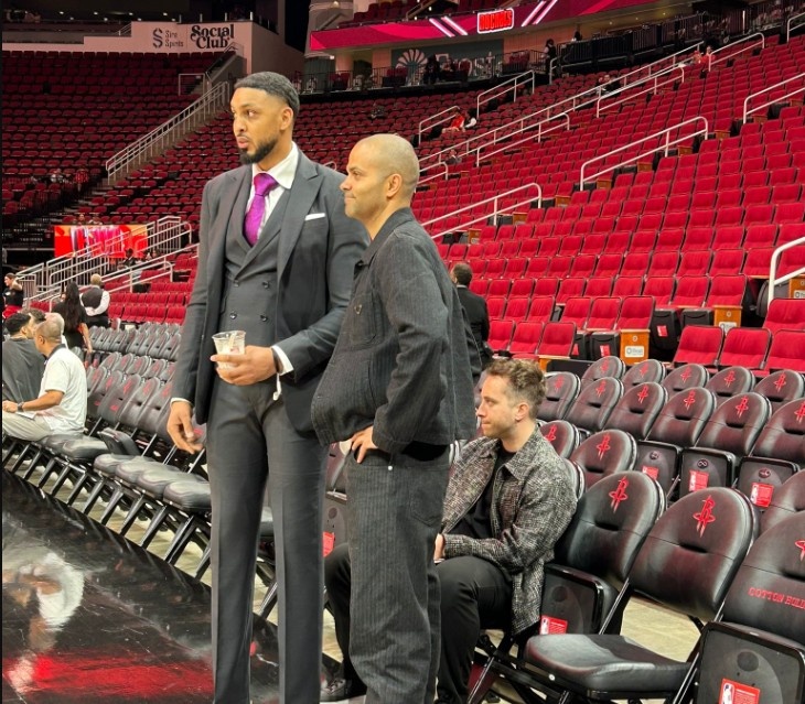 2025-02-27 10:07:58為球隊打氣!馬刺名宿帕克今天來到了豐田中心觀戰馬刺VS火箭