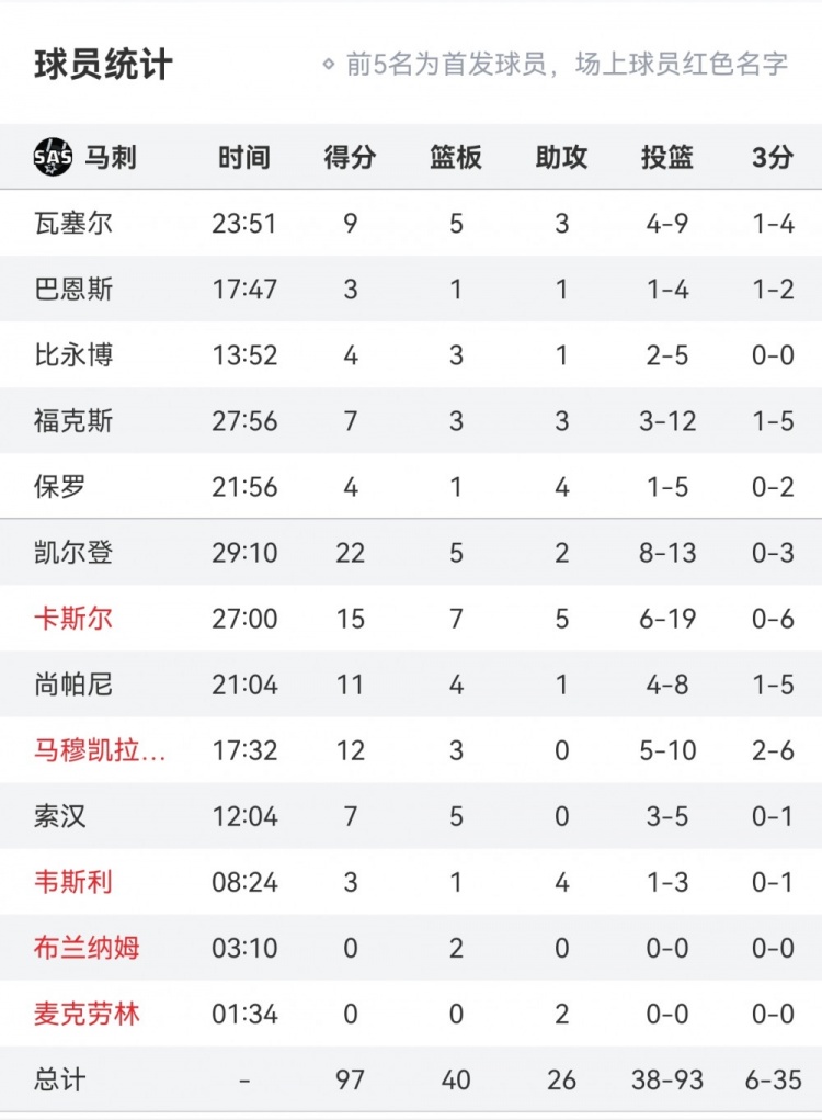 2025-02-27 15:16:23主力低迷!馬刺首發沒人得分上雙 福克斯&保羅合計17中4