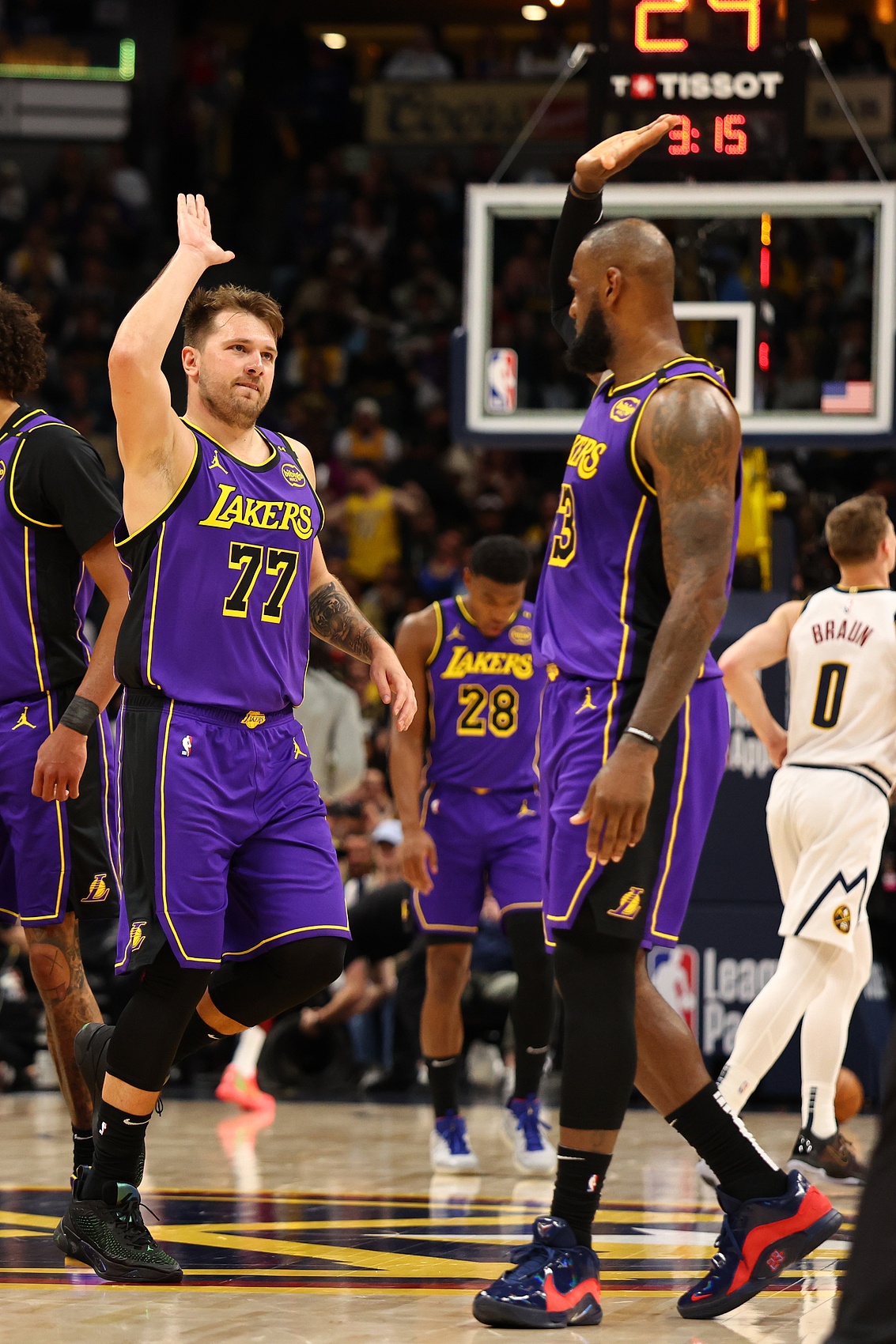 在與掘金隊的比賽后,湖人隊主教練JJ-雷迪克在更衣室發表了一番充滿激情、鼓舞士氣的講話,他為他的球隊加油鼓勁:“賽前,我躺在地板上做呼吸練習,我設想我們的球隊會打成什么樣子,而你們的表現甚至更好。”在肯定了替補席出色的表現后,雷迪克將注意力轉向了他的新球星:“盧卡(東契奇),很高興你TM回來了!很高興你回來了。”