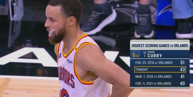 2025-02-28 15:22:07還剩半節!庫里本場43分創個人對魔術第二高分 51分最高