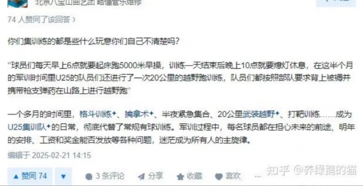 這里的很多人一提起“集訓”就是什么“把年輕人集中在一個斷了網的島上天天跑一萬米”,這種看法也頗受讀者歡迎。