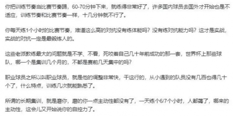 然后是兩個月技戰術訓練——在過去尤納斯時代可能更多的涉及到身體強度和力量的練習。直到他們被發現連基本功都不過關。是的,國家隊不是花時間訓練基本功的地方。但這個問題本來是該有誰來解決的呢?他們有解決這些問題嗎?在反對集訓的聲浪外,大家有沒有思考過這些深層次問題。你可以說管理錯位——但從來也就沒人管啊。