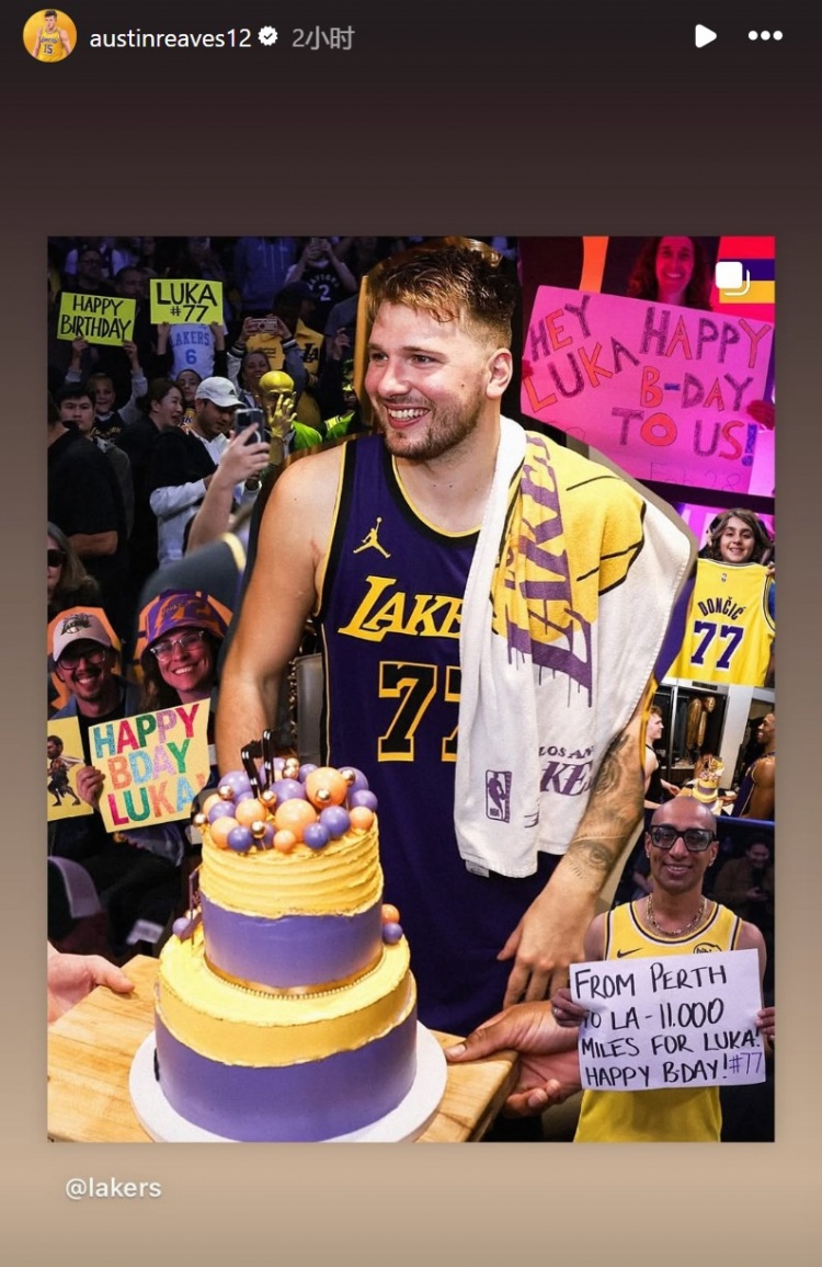 2025-03-01 21:25:15湖人官方曬東契奇慶生照 有球迷跨越半個地球前來祝賀 里夫斯轉發