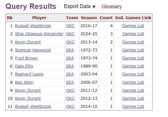 2025-03-04 12:58:56亞歷山大單賽季4次50+ 追平MVP賽季威少并列隊(duì)史最多