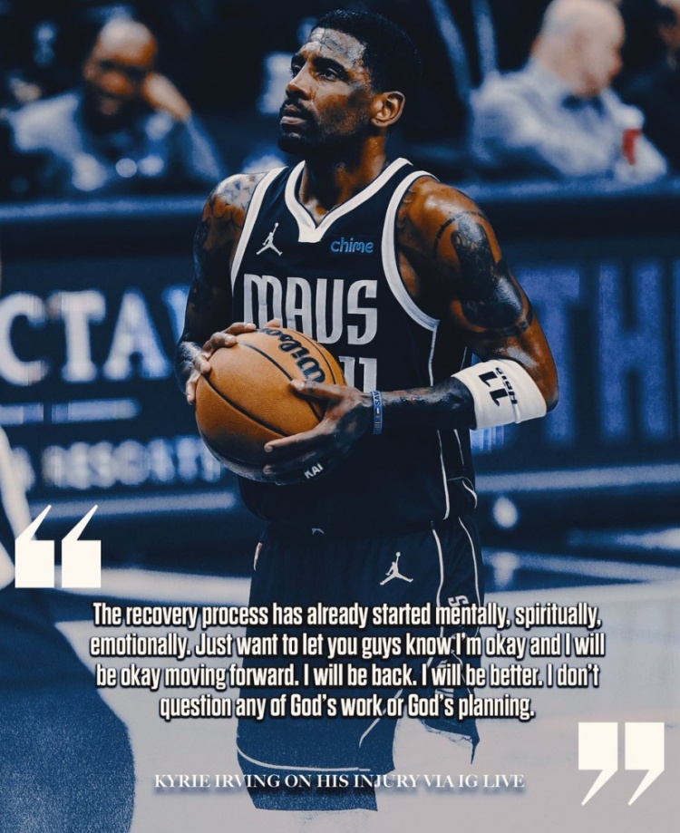 歐文在社交媒體上直播時(shí)說(shuō)道:“我在心理上、情感上和精神上的恢復(fù)過(guò)程已經(jīng)開(kāi)始了。我想讓大家知道,我很好,我之后會(huì)好起來(lái)的。我會(huì)回來(lái)的。我會(huì)變得更好。我不會(huì)去質(zhì)疑上帝的工作或者是計(jì)劃。”