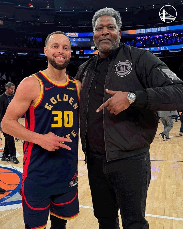 2025-03-05 16:01:19庫里賽后和“大媽”拉里-約翰遜合影 后者是庫里父親黃蜂時期隊友