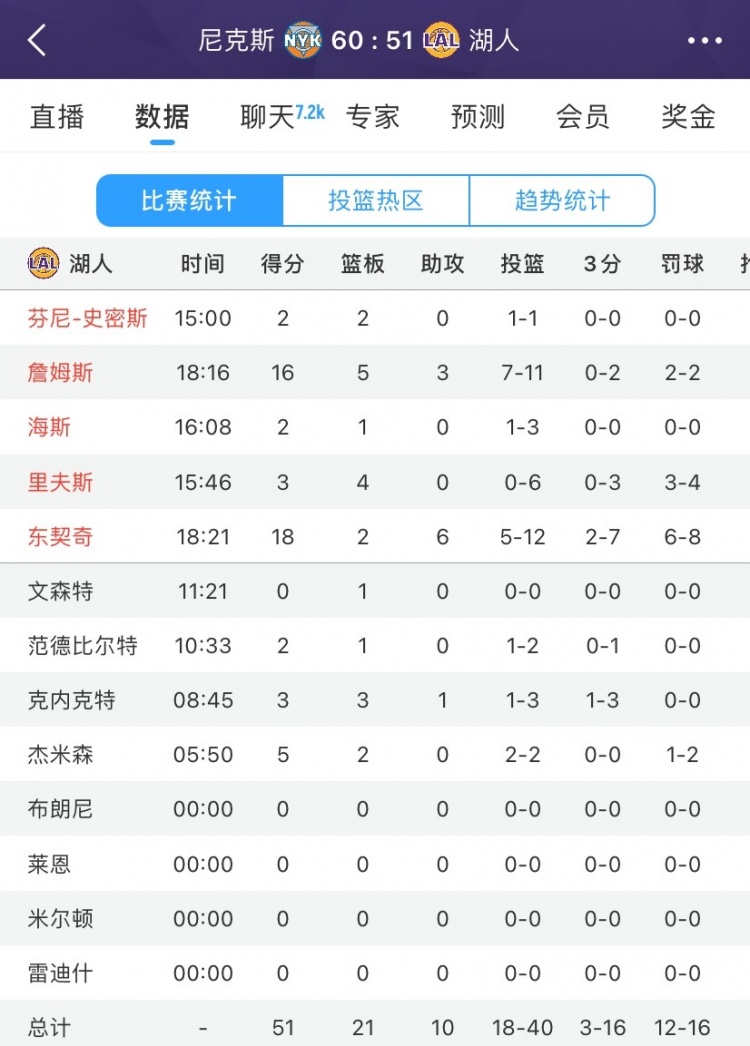 2025-03-07 16:46:24今天誰(shuí)都不準(zhǔn)!湖人半場(chǎng)投射不在線 全隊(duì)三分僅16中3&命中率18.8%
