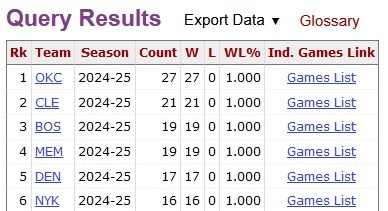 2025-03-07 16:55:43本賽季凈勝15+場次榜:雷霆27場第1 騎士21場第2 綠軍20場第3