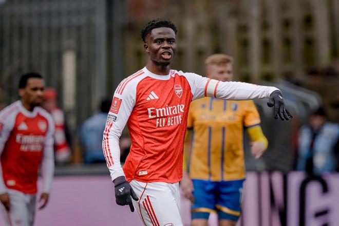 這場比賽中,24歲的薩卡替補登場,幫助阿森納在客場以2比1擊敗曼斯菲爾德鎮(zhèn),成功晉級足總杯下一輪。賽后,他在社交媒體上曬出一名球迷舉著阿森納球衣的照片,不過球衣背面印著帶有侮辱意味的“Saka sh**”字樣。面對這種帶有挑釁意味的舉動,薩卡沒有動怒,而是用輕松幽默的方式進行了回應(yīng)。