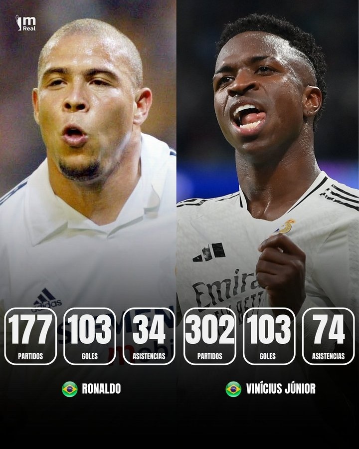 2025-03-10 03:16:09維尼修斯為皇馬打入103球追平大羅,并列隊內頭號巴西射手