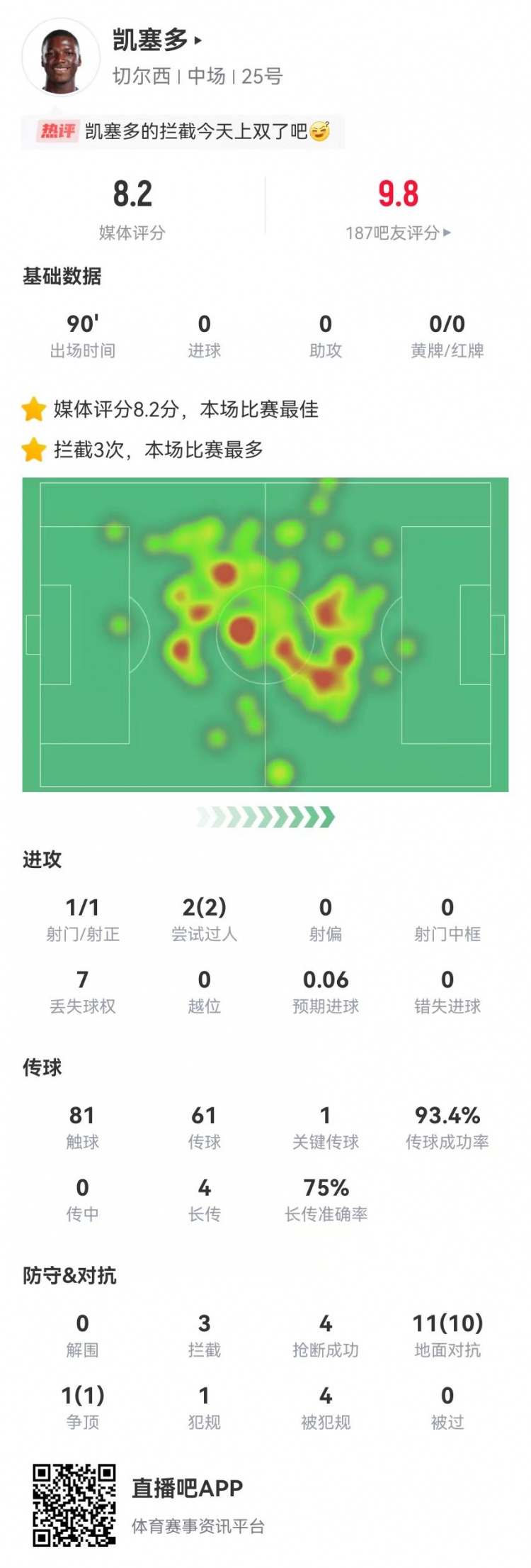 2025-03-10 03:19:40凱塞多本場(chǎng)12對(duì)抗11成功+4造犯規(guī) 3攔截4搶斷0被過(guò) 獲評(píng)8.2分最高