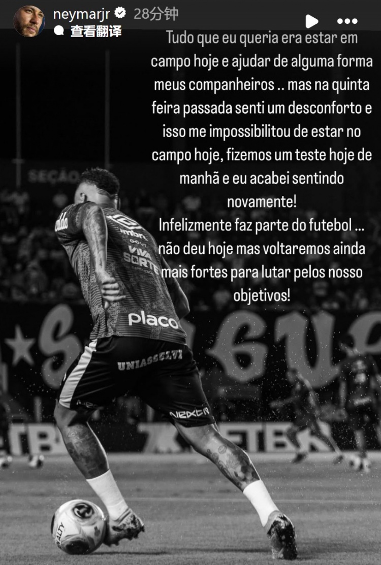 2025-03-10 12:51:41內馬爾:我想在球場上幫助我的隊友,但我感到不舒服所以無法上場