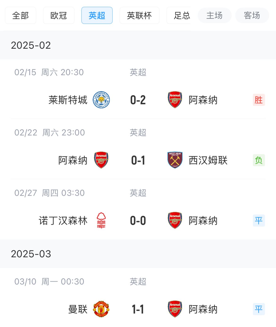 過(guò)去三輪比賽,阿森納總共只拿到2分,面對(duì)西漢姆聯(lián)、諾丁漢森林和曼聯(lián),槍手總共只打進(jìn)1球。