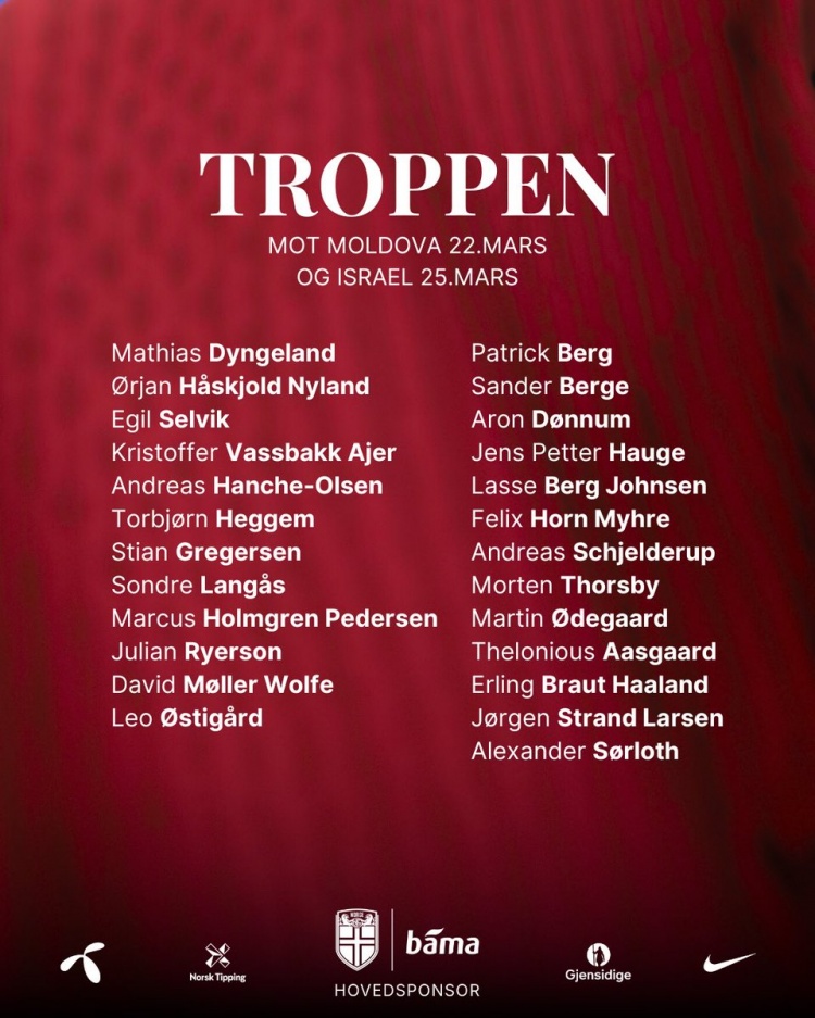 2025-03-11 20:20:57挪威世預賽大名單:哈蘭德、厄德高領銜,索爾洛特在列
