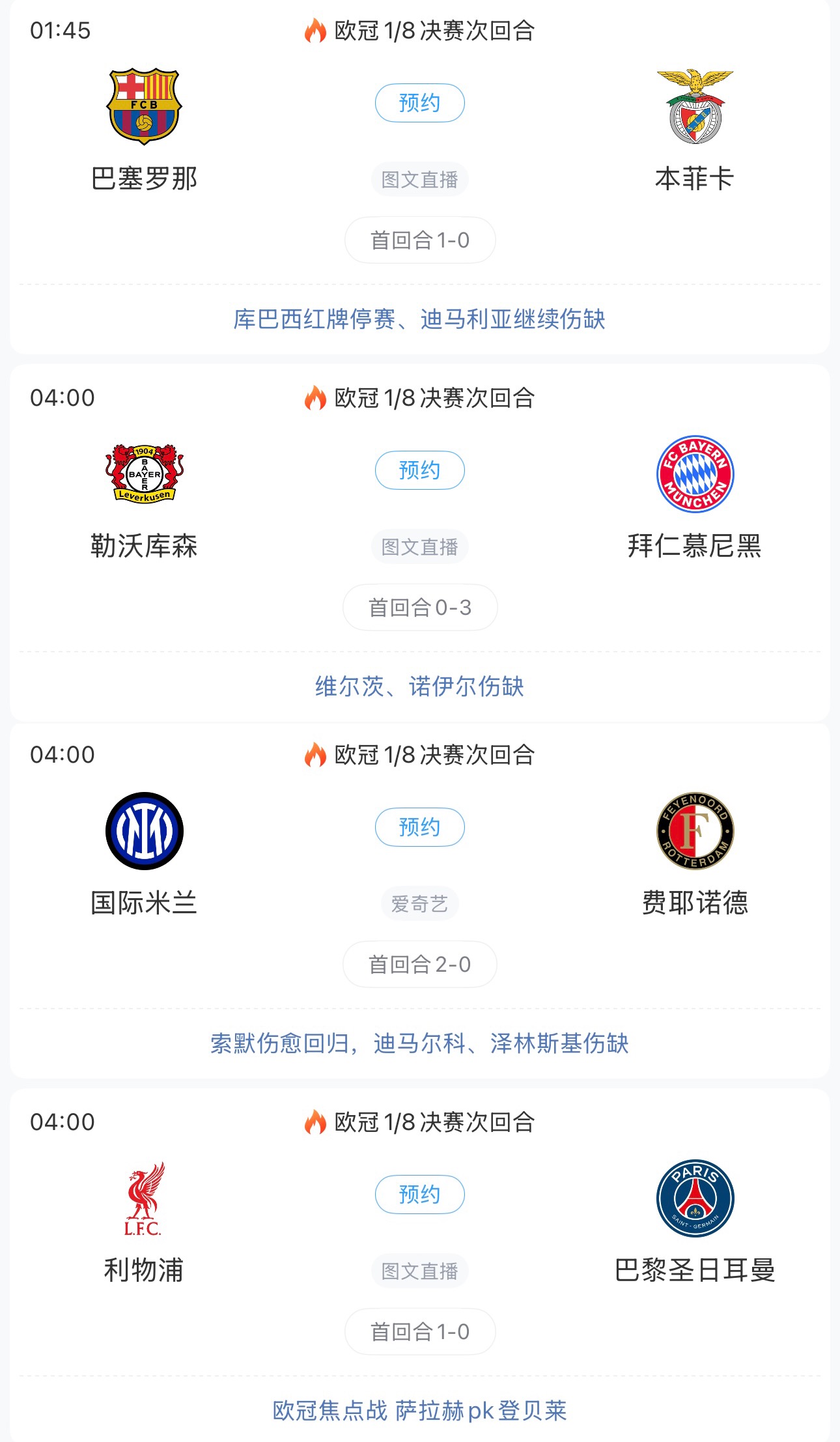 2025-03-11 20:33:57歐冠1/8決賽次回合??薩拉赫登貝萊"金球之爭" 巴薩拜仁國米出戰
