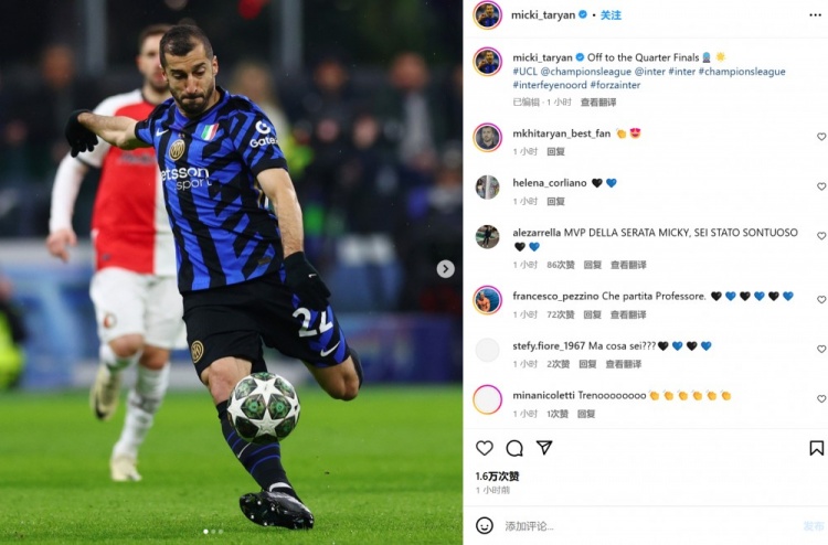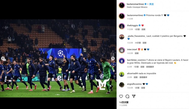 2025-03-12 09:26:17將戰拜仁!勞塔羅&姆希塔良&圖拉姆社媒曬照慶祝晉級八強
