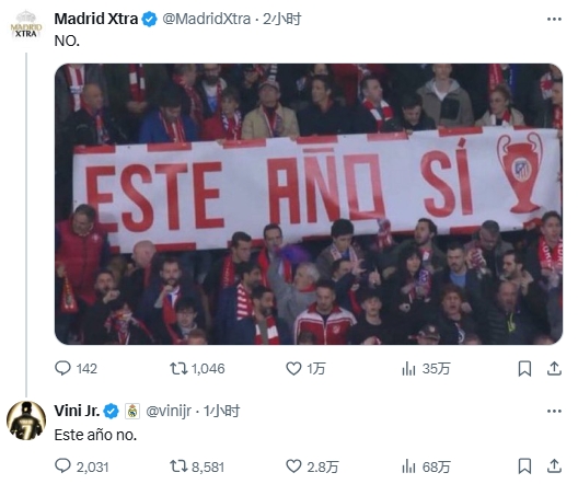 2025-03-13 17:29:38馬競球迷舉橫幅:歐冠就今年了!維尼修斯社媒評論:今年已無