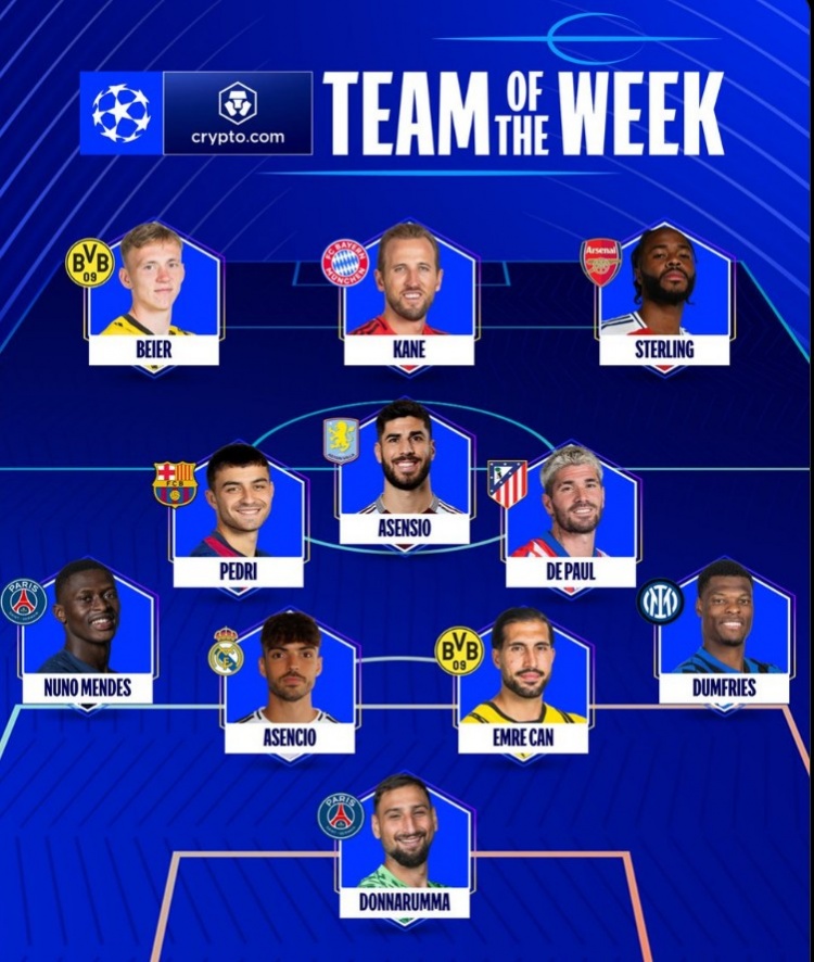 2025-03-14 00:17:27歐冠官方本輪最佳陣:凱恩領(lǐng)銜,佩德里、斯特林、多納魯馬在列