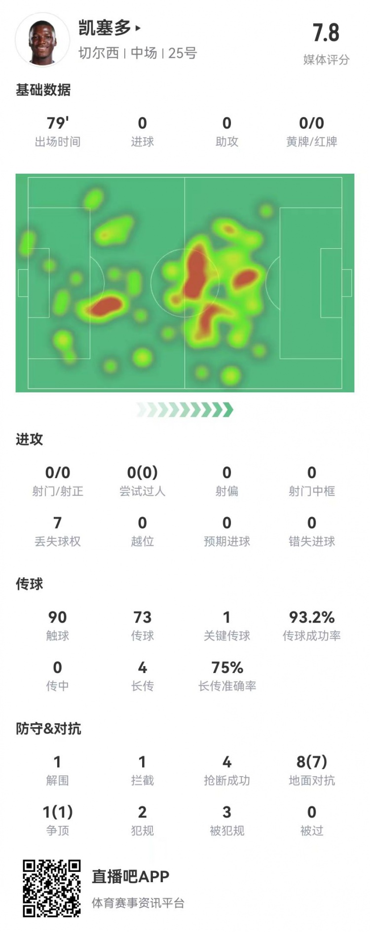 2025-03-14 08:01:20凱塞多本場9對抗8成功+4搶斷3造犯規 3成功長傳 獲評7.8分
