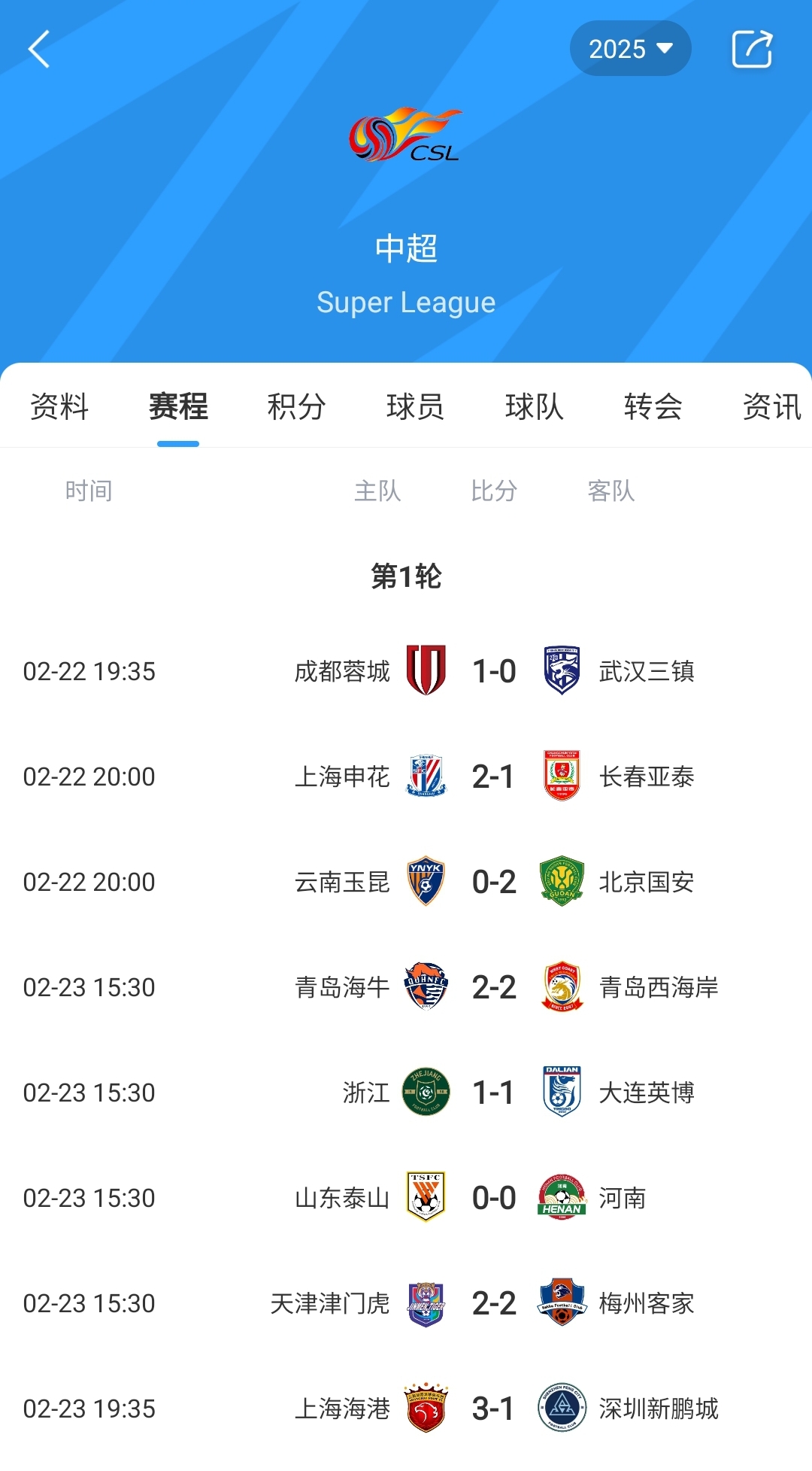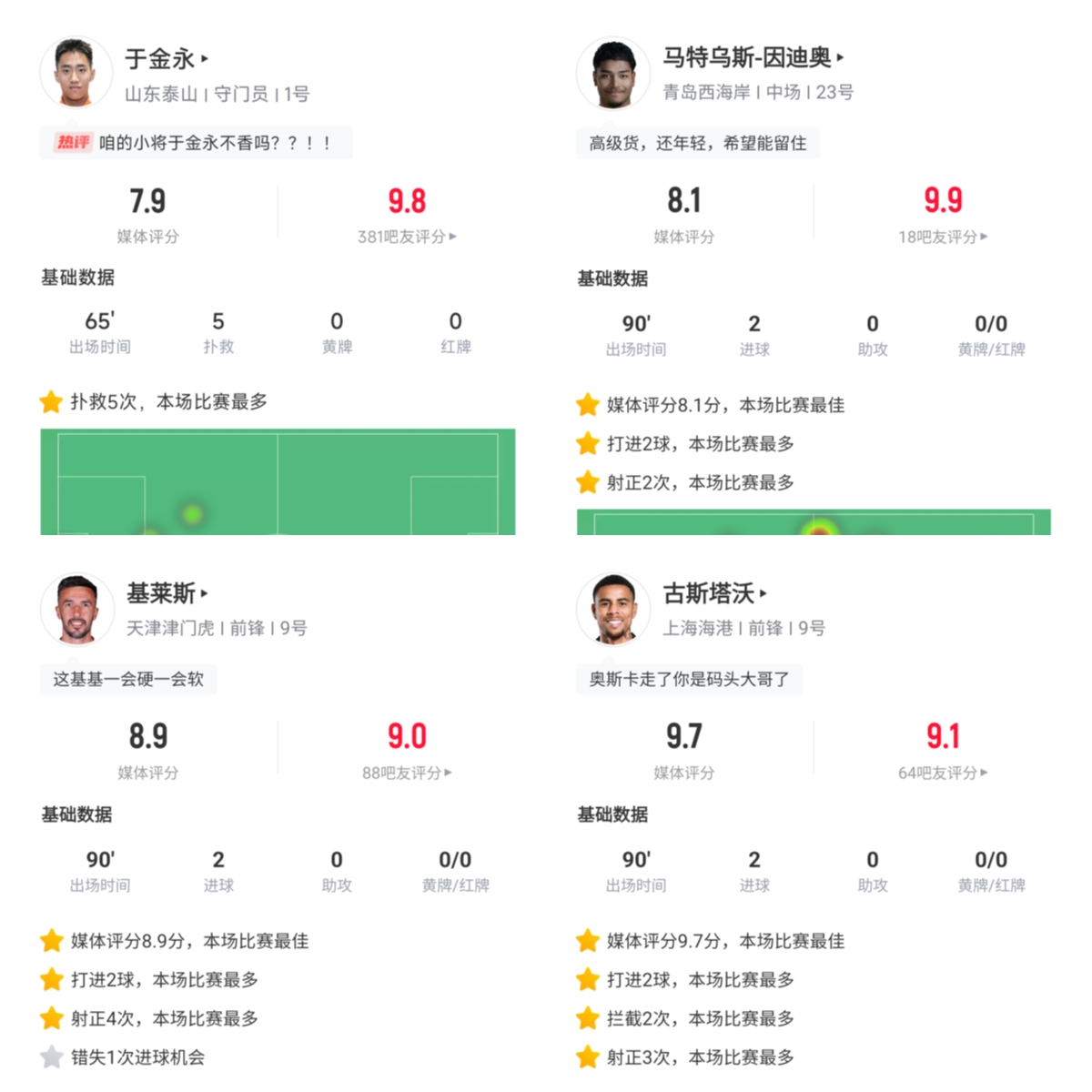 2025-02-24 20:05:55【直播吧】中超首輪最佳球員:于金永險勝,得票率僅多基萊斯1.7%