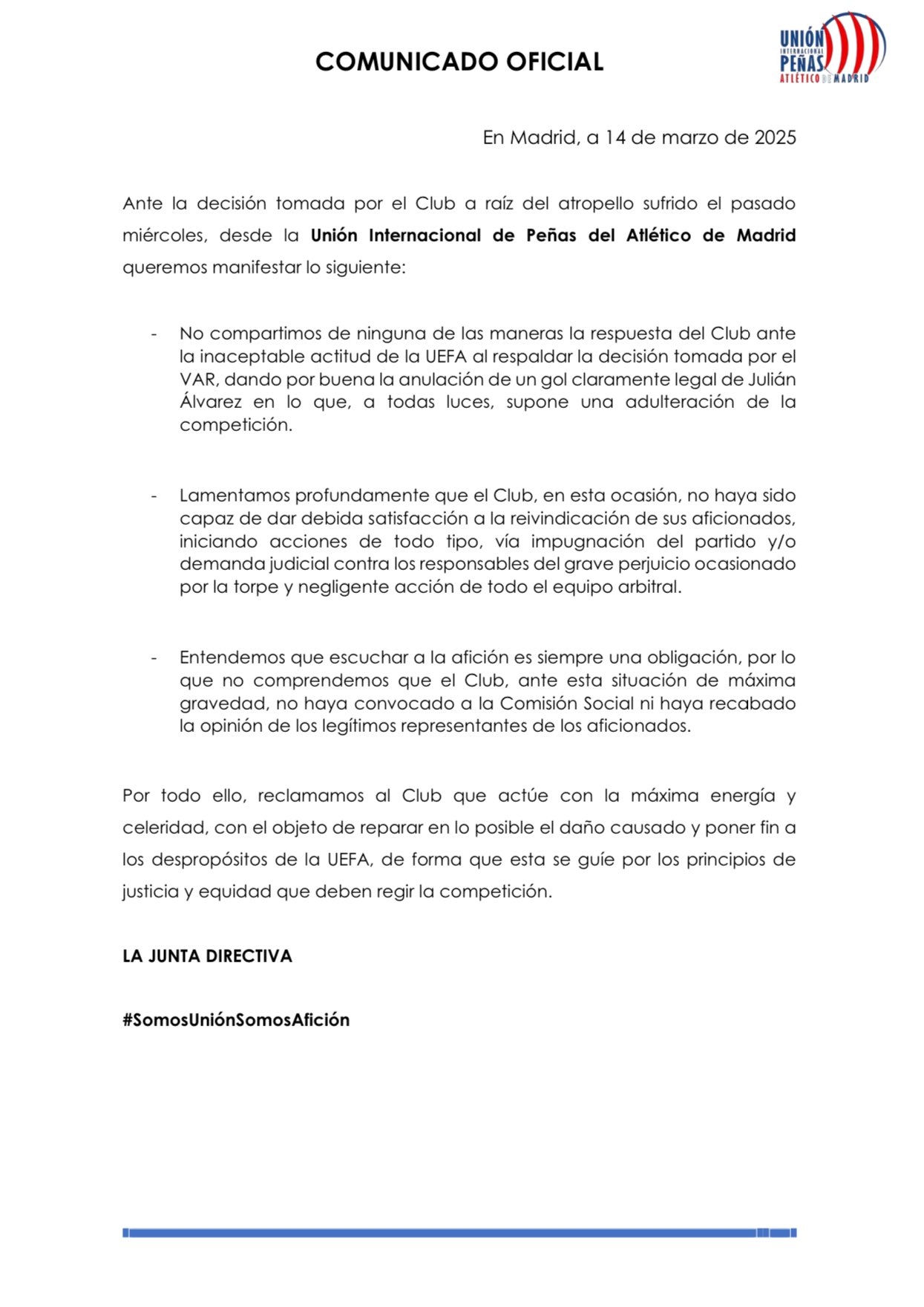 馬競球迷協會發表聲明,希望俱樂部對阿爾瓦雷斯點球被取消一事采取措施。