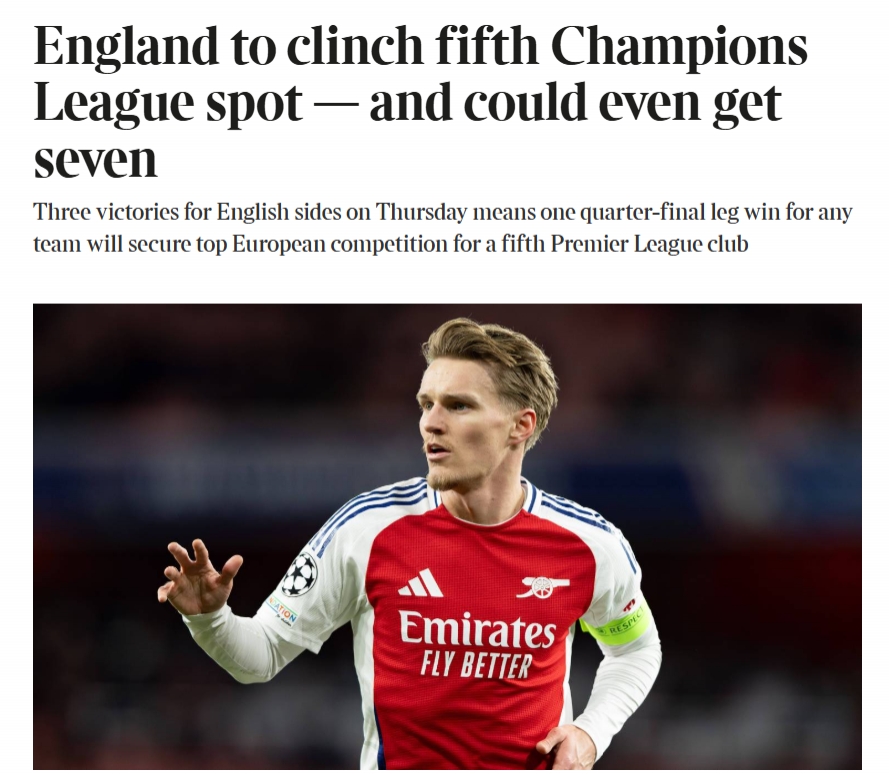 2025-03-15 18:26:20英超盛世?極端情況下,英超下賽季最多可以有7支球隊(duì)踢歐冠!