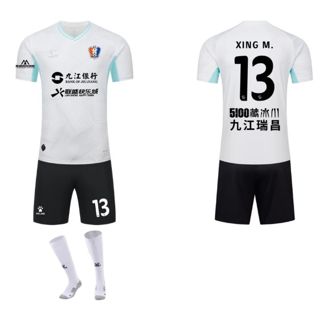 第二客場戰袍以皓月白為主色調,搭配淺藍色細節及黑色比賽短褲,簡潔大氣,沉穩中透露著鋒芒。球衣設計靈感來源于江西廬山著名的云霧景觀,寓意著球隊在客場比賽中披荊斬棘,乘風破浪。