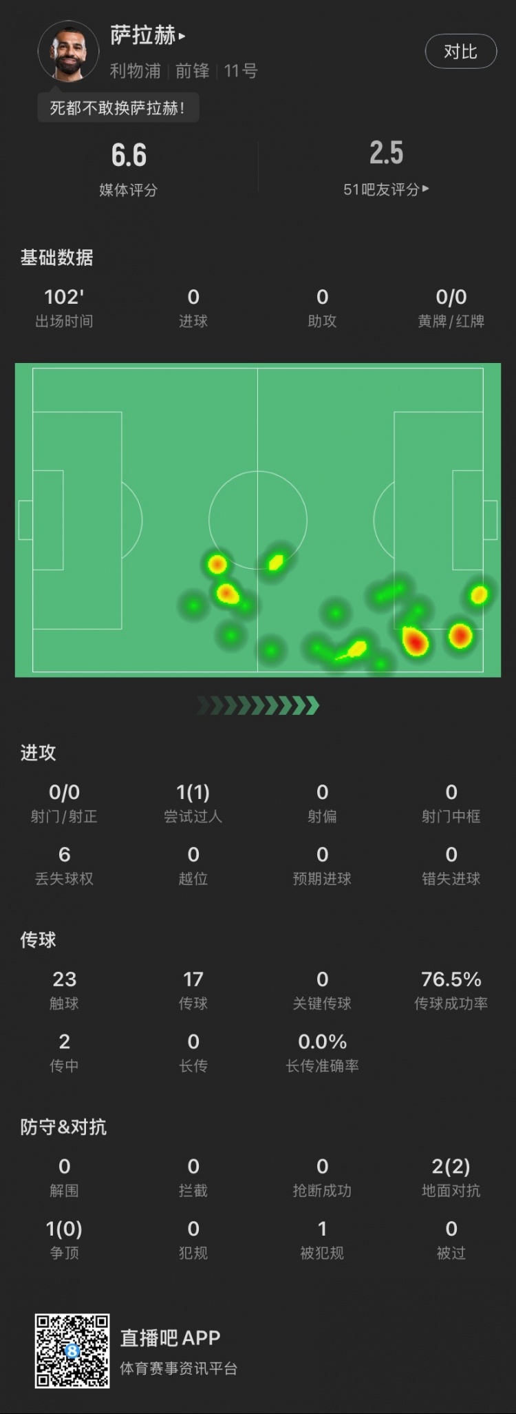 2025-03-17 11:26:56真累了?薩拉赫出場90分鐘+0射門0創造機會,是利物浦生涯首次