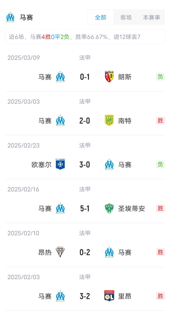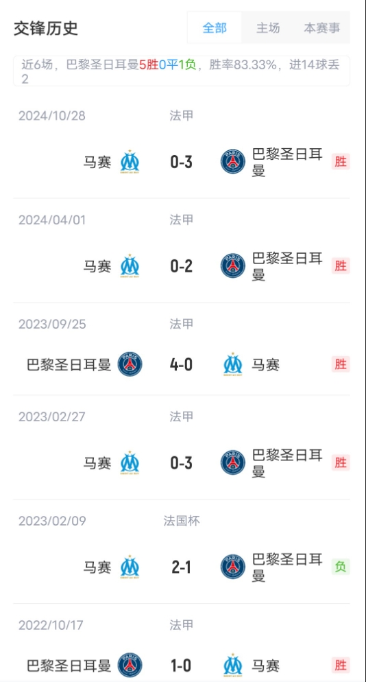 目前法甲聯(lián)賽巴黎取得了20勝5平的成績,積65分高居聯(lián)賽榜首。馬賽取得了15勝4平6負(fù)的成績,積49分位居聯(lián)賽第二。