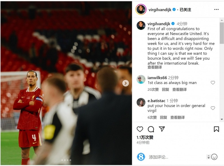 2025-03-17 20:10:22范迪克社媒:這是艱難而令人失望的一周,我們會重新振作