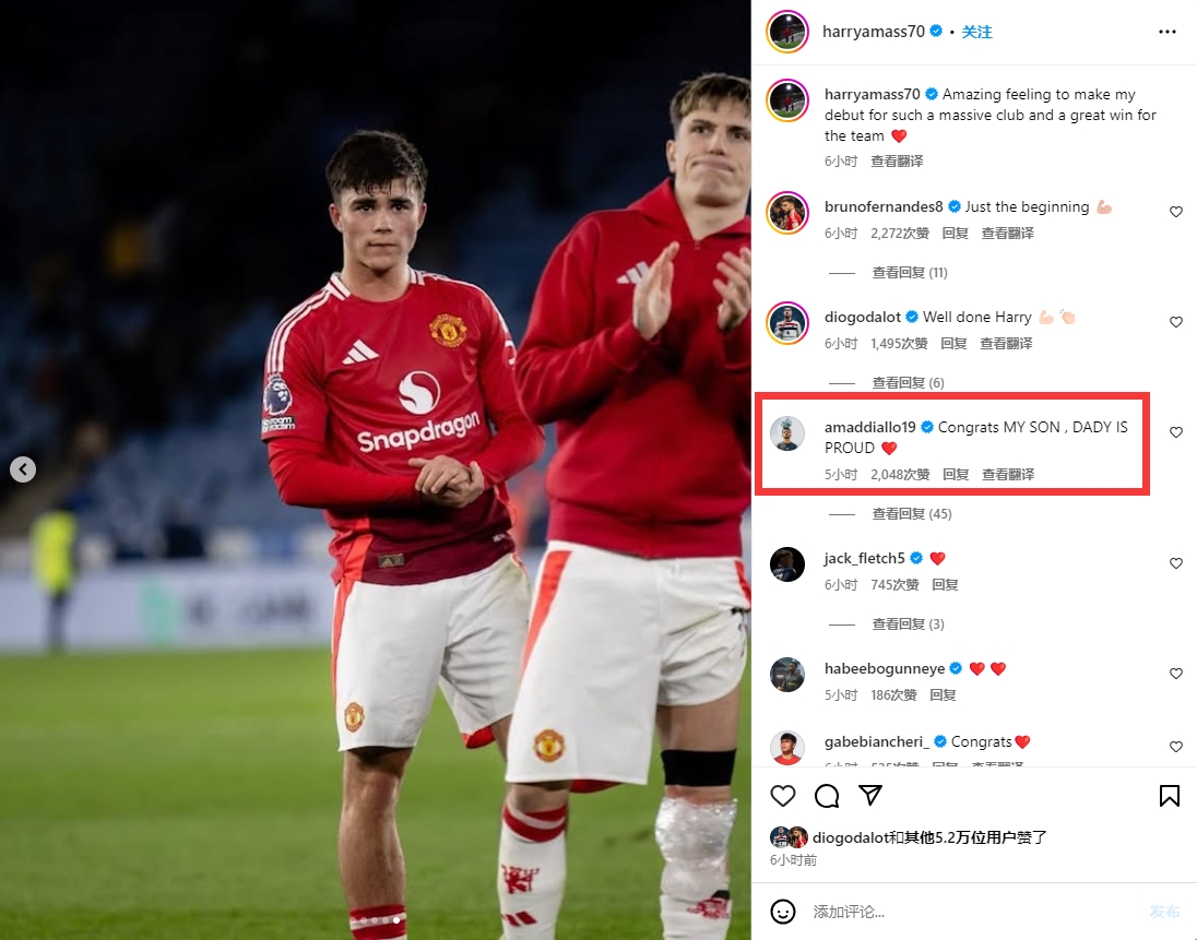 2025-03-17 20:25:1218歲阿瑪斯曼聯(lián)首秀,22歲阿瑪?shù)拢鹤YR我的兒子,爸爸很自豪??