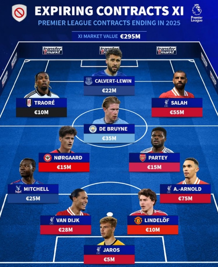 2025-03-18 07:04:24英超合同到期最貴陣:阿諾德領(lǐng)銜紅軍4將,德布勞內(nèi)、托馬斯在列