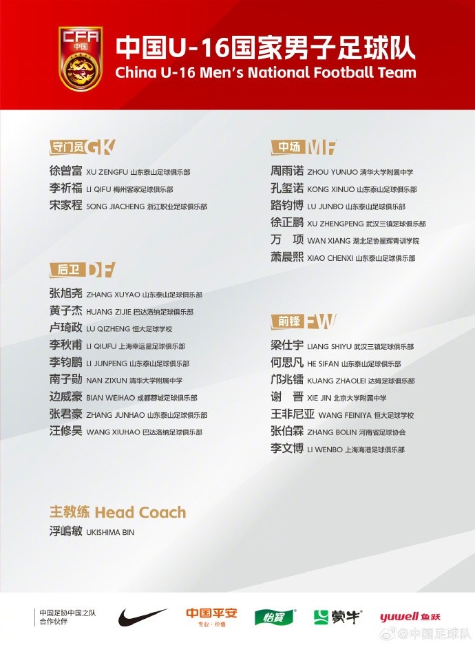 2025-03-18 15:10:55U16國足集訓名單:梁仕宇、萬項、鄺兆鐳在列,泰山8人